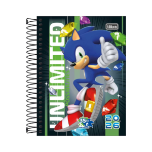 A Agenda 2026 – Tamanho M5 – Capa Sonic “Unlimited Possibilities” (35th Anniversary) é ideal para quem busca organização diária com um visual moderno e cheio de atitude. A capa com o Sonic em destaque, cercado por elementos vibrantes e cristais do universo do personagem, transmite energia, movimento e celebra os 35 anos do ouriço mais famoso dos games.