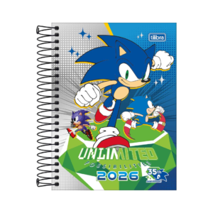 A Agenda 2026 – Tamanho M5 – Capa Sonic “Unlimited Possibilities” (35th Anniversary) é ideal para quem busca organização diária com um visual vibrante, moderno e cheio de energia. A capa com o Sonic em destaque, em diferentes estilos e poses de ação, celebra os 35 anos do personagem e transmite movimento, atitude e dinamismo para o ano de 2026.