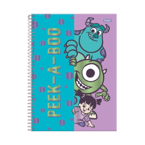 O Caderno Universitário Espiral – 10 Matérias – 160 folhas – Capa Monstros S.A. “Peek-A-Boo” é ideal para estudantes que buscam organização, resistência e um visual divertido. A capa ilustrada com Mike, Sulley e Boo traz cores vibrantes e um clima lúdico, tornando a rotina de estudos mais leve e envolvente.