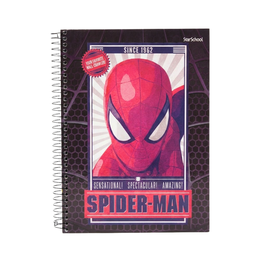 O Caderno Universitário Espiral – 10 Matérias – 160 folhas – Capa Spider-Man Clássico é ideal para estudantes que buscam organização, resistência e um visual atemporal. A arte com o rosto clássico do herói traz identidade forte ao material, combinando estilo retrô com funcionalidade para o uso escolar diário.