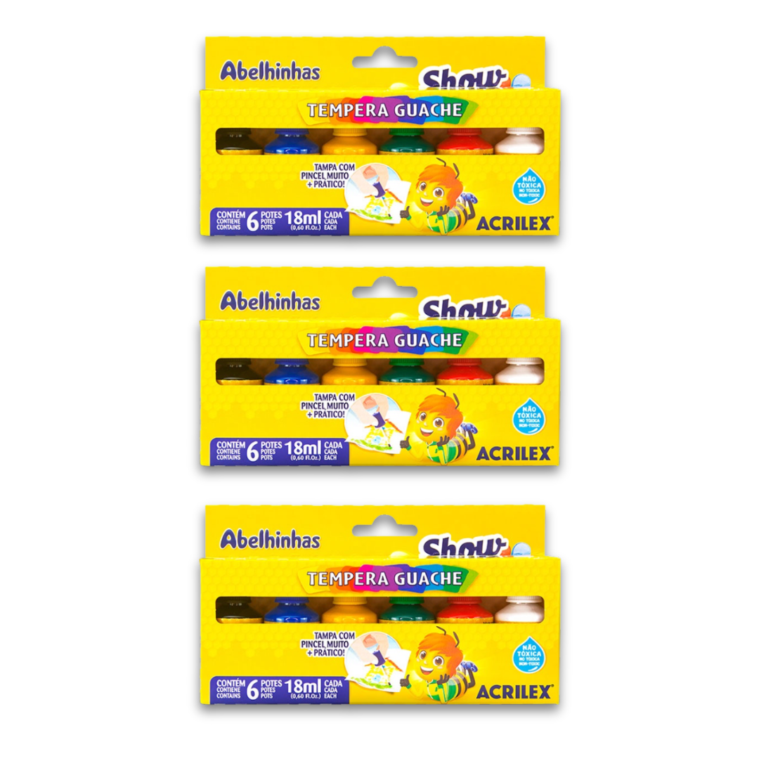 3x – Conjunto de giz de cera grosso (12 cores) – Acrilex
