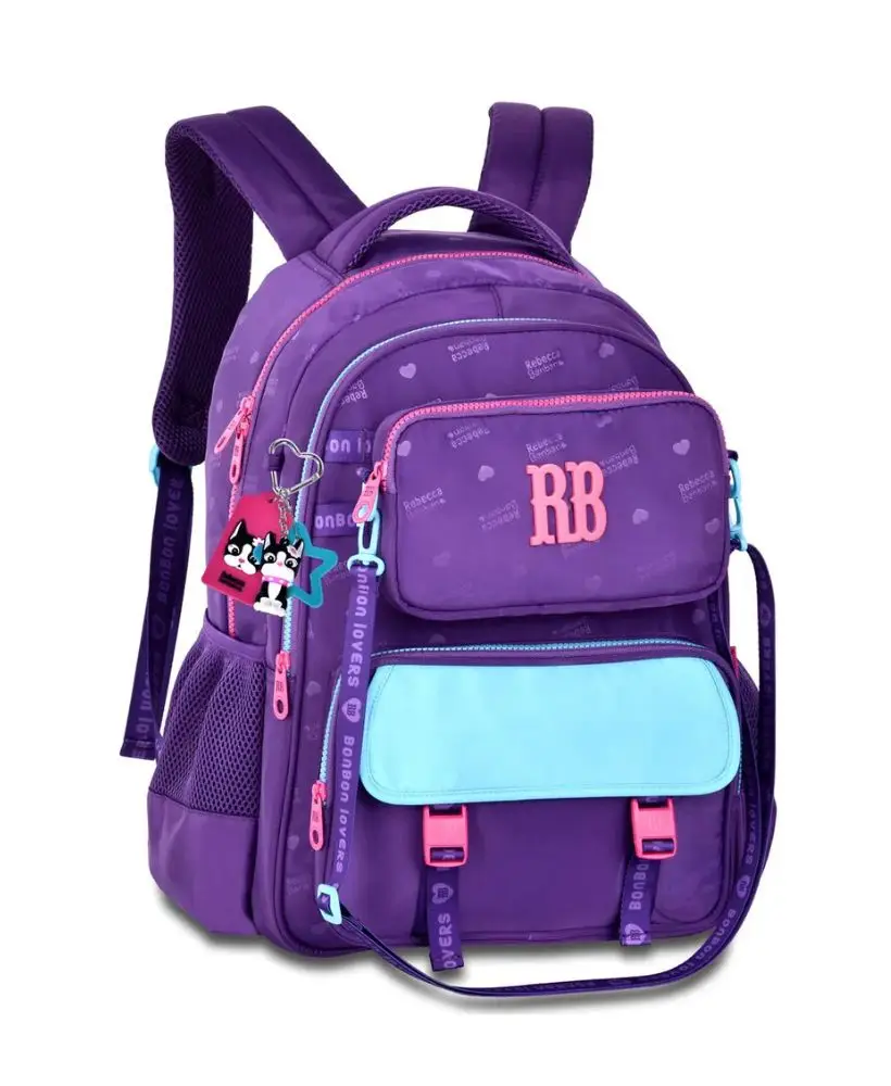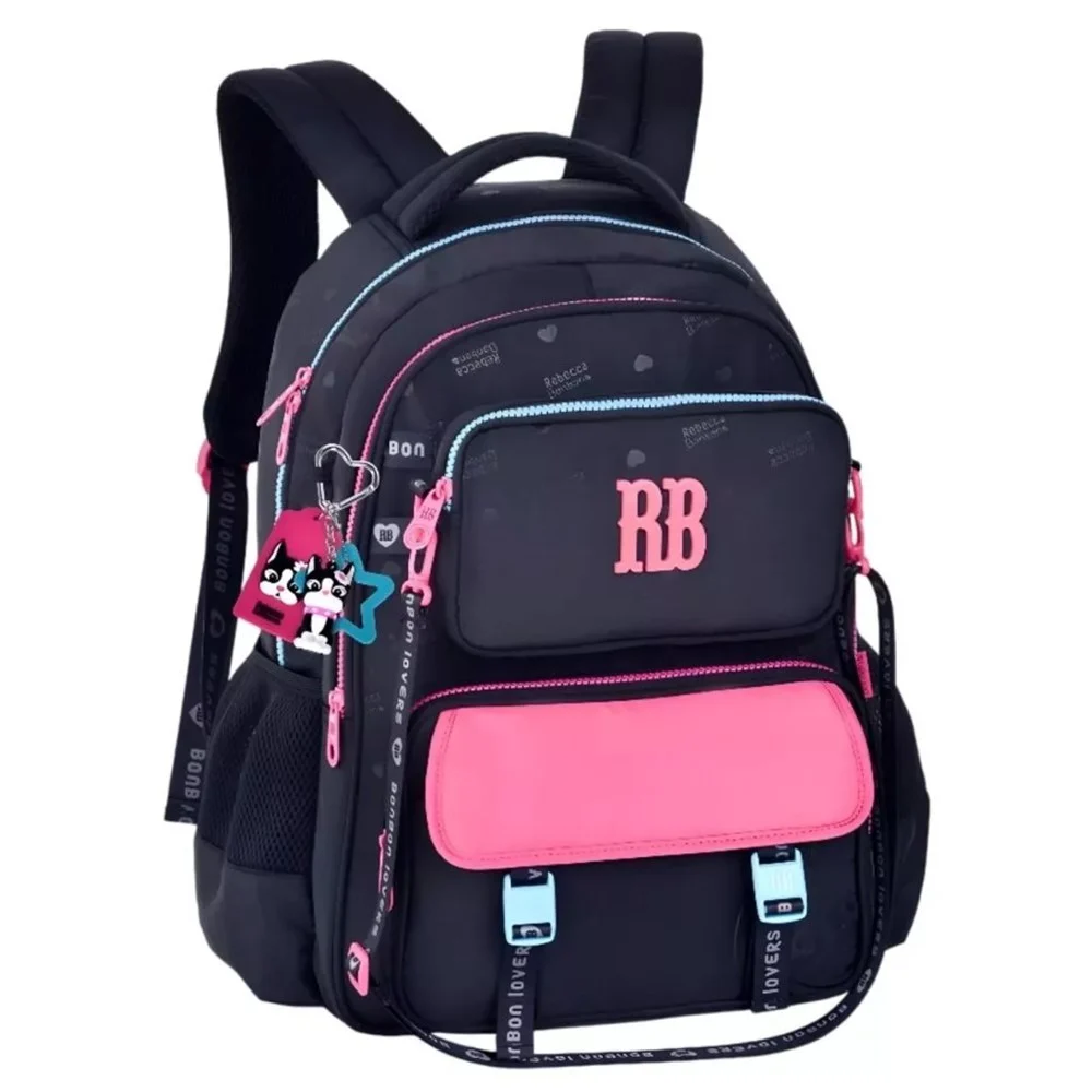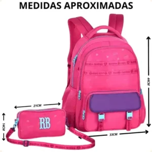 Estilo Marcante: Confeccionada em material soft o tecido é estampado com a escrita Rebecca Bonbon, zíperes coloridos com puxador personalizado e faixa logada nas alças de costas e na alça da bolsinha, além do chaveiro personalizado com a miniatura da Rebecca, Tag e Estrela de silicone.